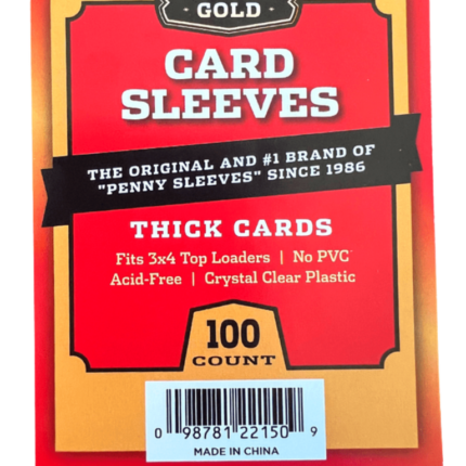 Cardboard Gold Soft Sleeves for Thicker Cards measure 2.75″ x 3.75″ allowing an extra 1/8″ more room than our regular sleeves. Thick Card Soft Sleeves fit in most 3×4 Top-Loaders for thicker cards….