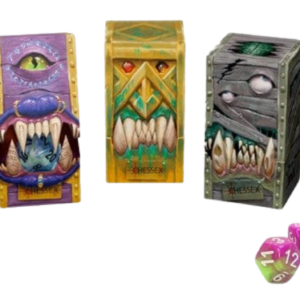 Hidden inside each monster box lies a treasure, waiting to be found.That treasure, more specifically, is 1 full polyhedral 7-die set in one of 32 brand new colors.Can you hear them calling out, yea…