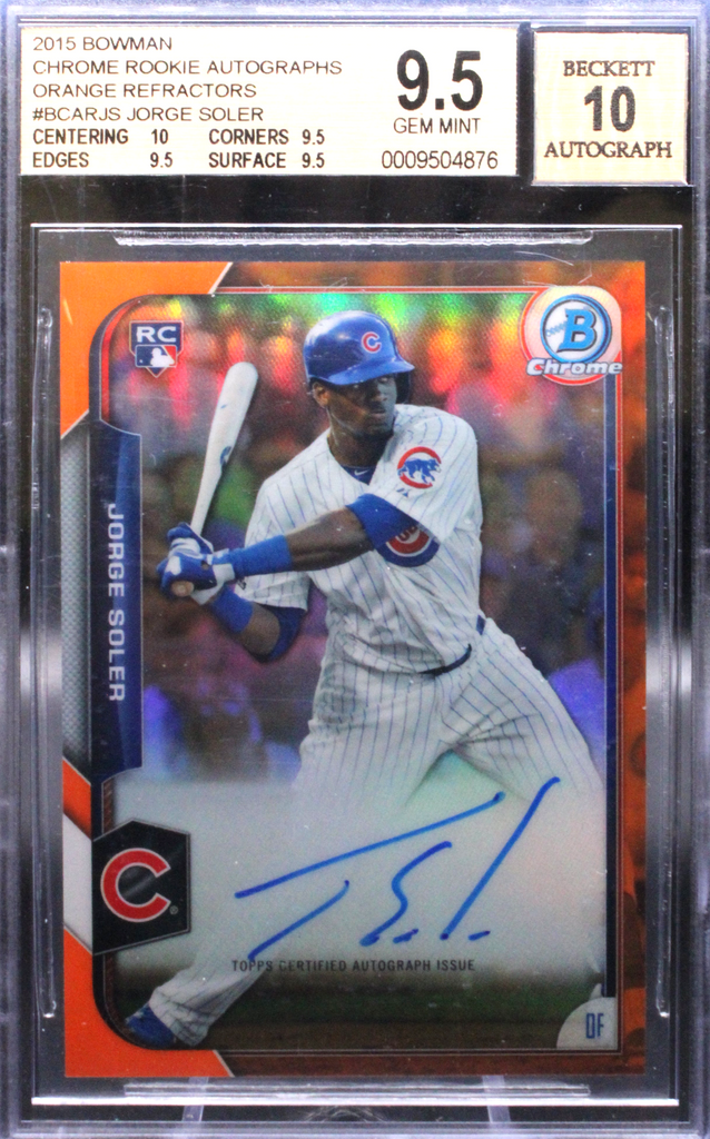 2015 Topps Bowman – Jorge Soler BCARJS – Orange Refractor Auto /25 – Beckett Gem Mint 9.5 Auto 10
