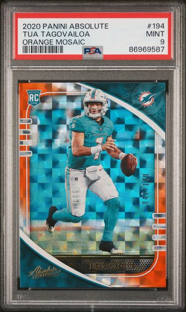 2020 Panini Absolute – Tua Tagovailoa 194 – Orange Mosaic /149 – PSA Mint 9