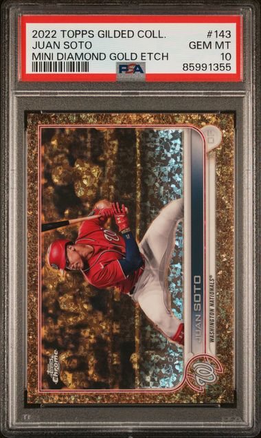 2022 Topps Gilded – Juan Soto 143 – Mini Diamond Gold Etch /50 – PSA 10