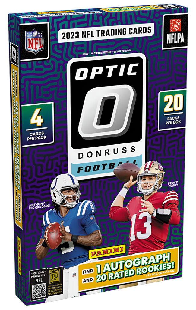 Every Box contains One Autograph, Twenty Rated Rookies, Twelve Parallels (Including Nine Numbered) & Four Inserts! The flagship Donruss Football epically meets Optichrome technology with 2023 Donru…