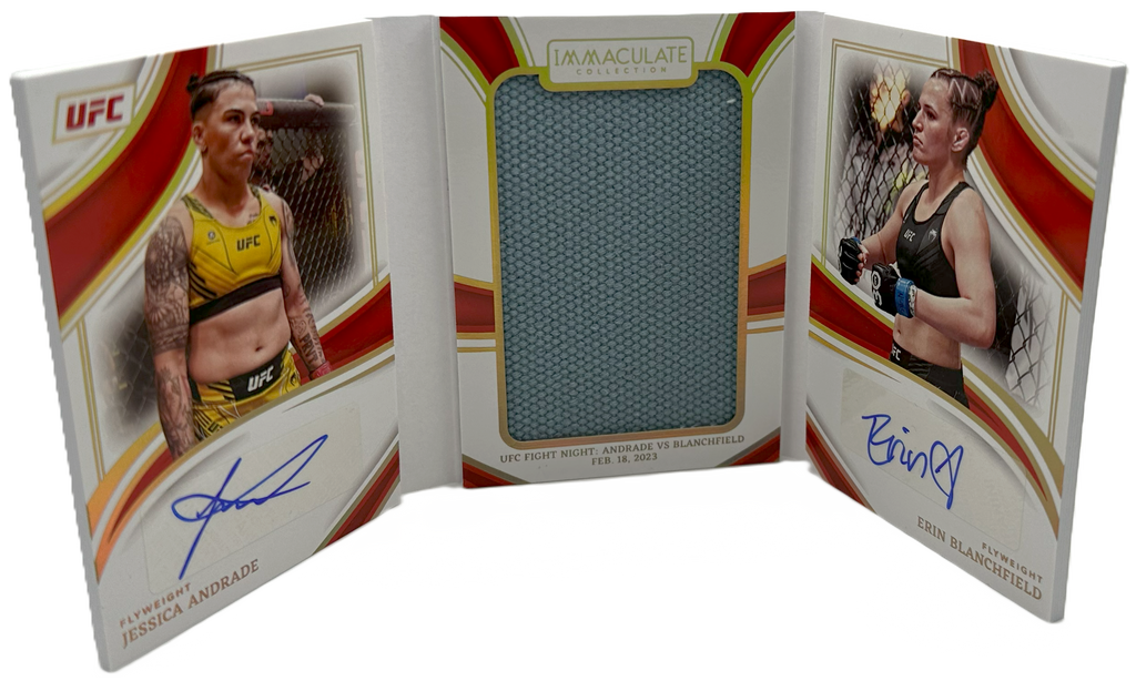 2023 Panini Immaculate UFC – Erin Blanchfield & Jessica Andrade JOC-JE – Jumbo Octagon Dual Booklet Auto 23/25