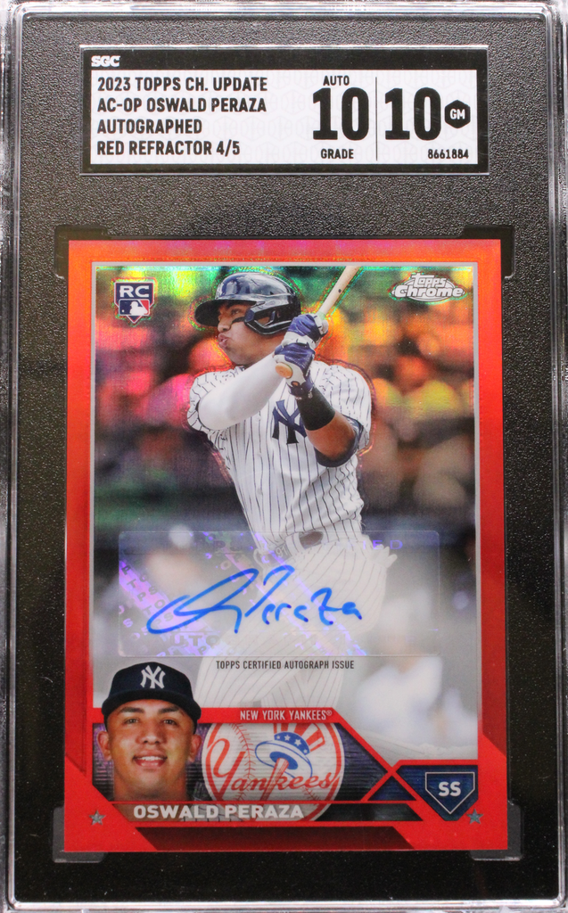 2023 Topps Chrome Update – Oswald Peraza AC-OP – Red Refractor Auto /5 – SGC 10 / 10