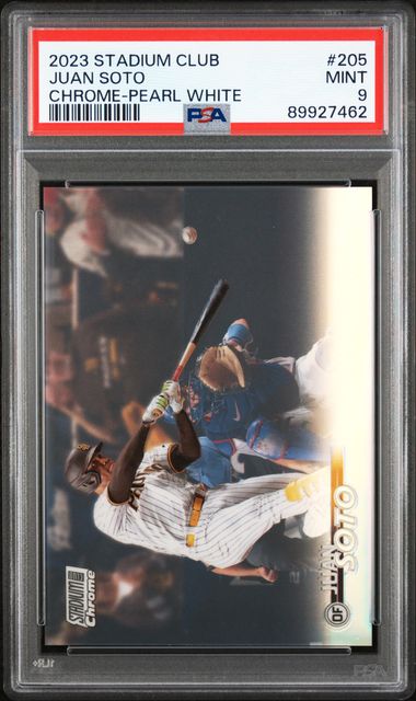 2023 Topps Stadium Club – Juan Soto 205 – Chrome Pearl White /30 – PSA Mint 9
