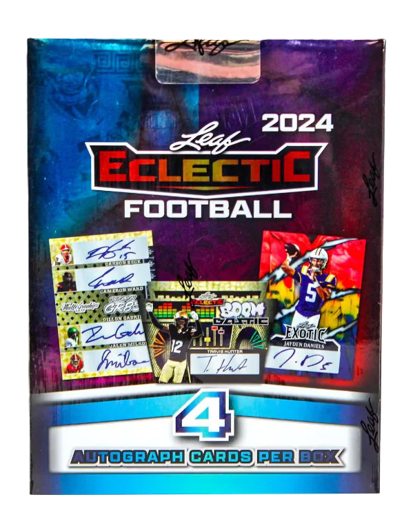 Hobby Box Configuration – 4 Autograph Cards Per Box 2024 Leaf Eclectic Football brings you some of the top Leaf brands from the past and present! Collectors will find an incredible checklist of for…