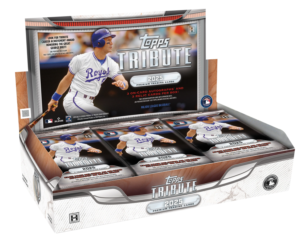 2025 Topps Tribute Baseball Hobby Box Each Box contains a mixture of Three Autographs, Three Relic Cards, and One Base Card Parallel or Rookie Parallel numbered to 150 or less, on average! 2025 Top…