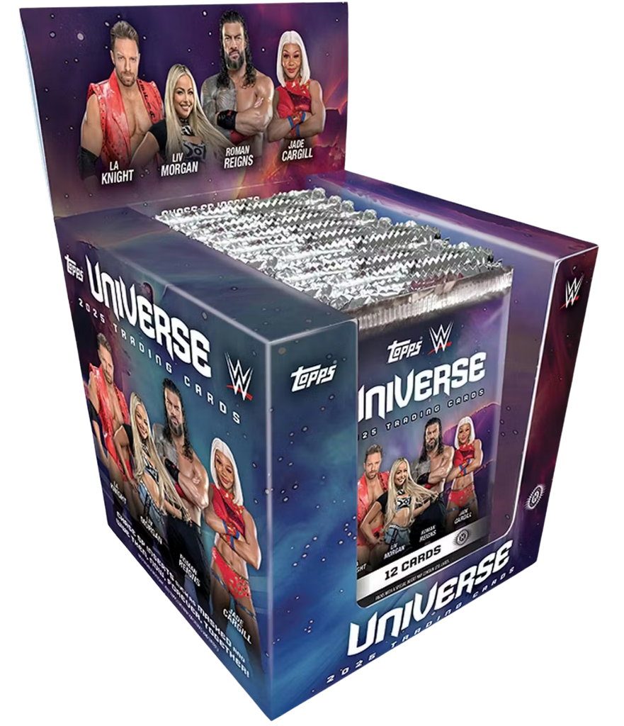 Each Box contains 2 Autographs, 1 Relic, 3 Numbered Parallels, 1 Ring Parallel, 3 Other Parallels, and 12 Inserts, on average! Topps Universe WWE makes it’s debut in 2025, featuring its tantalizing…