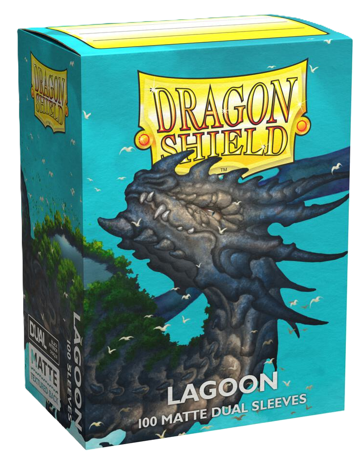 Lagoon, cool and relaxing. Dragon Shield Matte Dual sleeves. Clear front and a textured matte back. Fully opaque sleeves with a black interior, an elegant backdrop for black bordered cards. The stu…