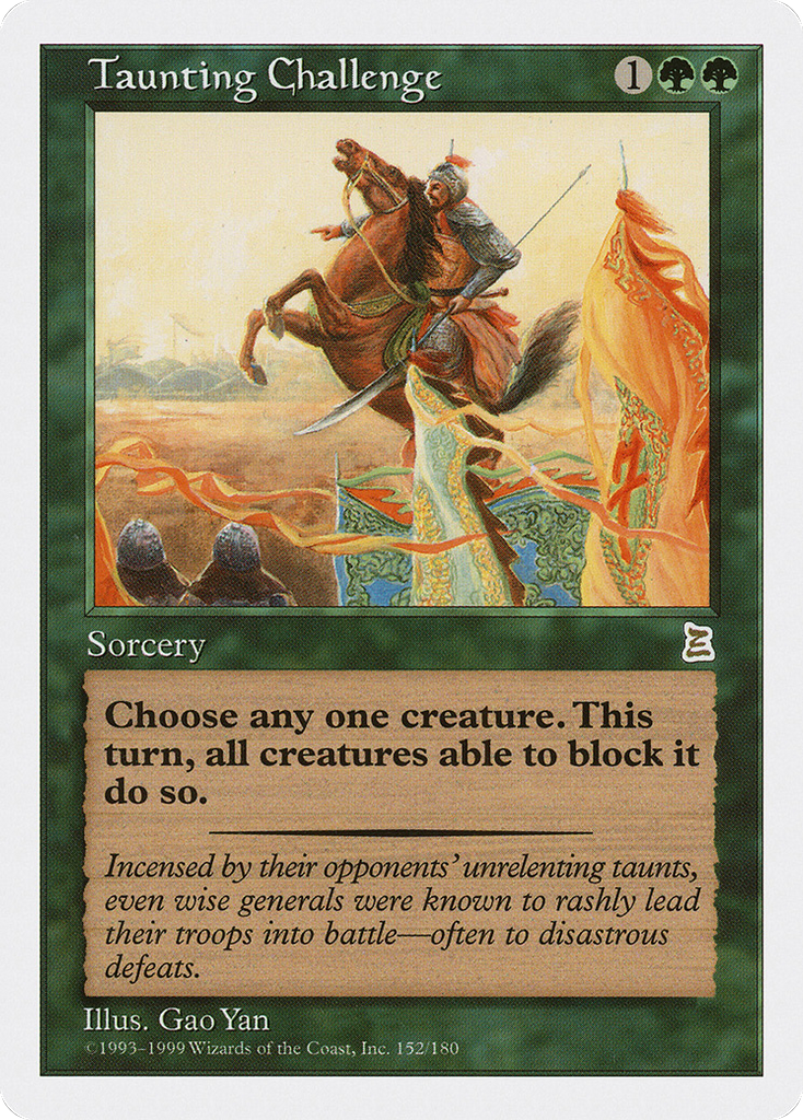 Choose any one creature. This turn, all creatures able to block it do so. Rarity:R #:152 Card Type:Sorcery Casting Cost: 1GG
